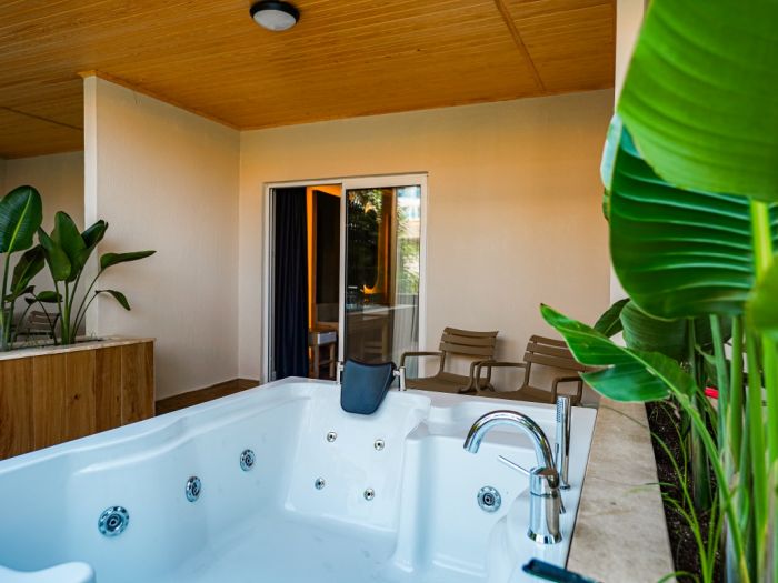 За децата: Открит и закрит детски басейн, детска площадка, мини клуб (3-12 г).