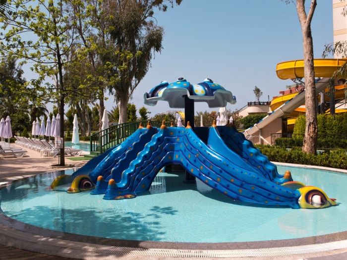 За децата: 3 открити басейна, водни пързалки, детска площадка, мини клуб (4-12г.), мини диско, музикални игри, детски приключенски парк, детегледачка (платено).