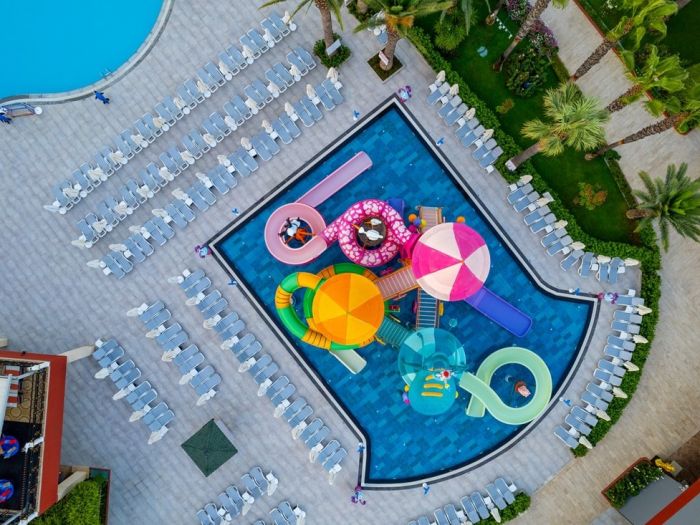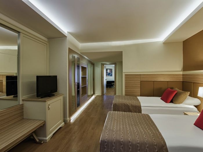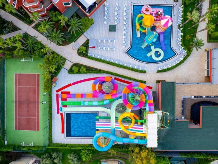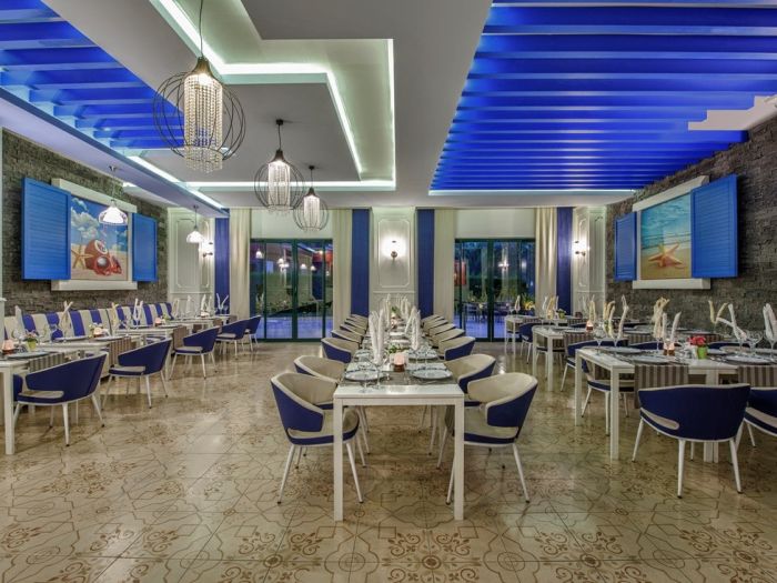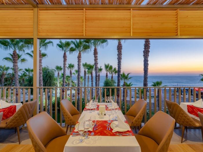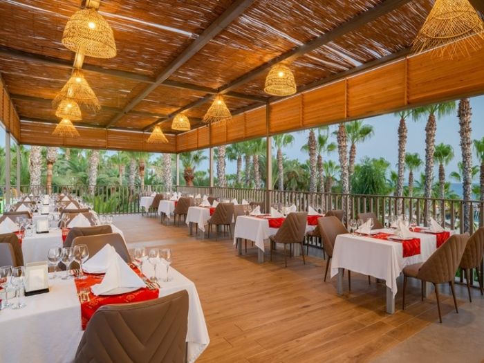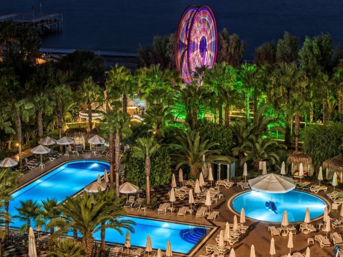 Оновен ресторант, 7 а - ла - карт ресторанта с едно безплатно посещение при 7-дневен престой - турски , италиански , рибен , китайски , японски , суши бар, мексикански), 14 бара, 2 открити и 1 закрит басейн, релакс басейн, водни пързалки, увеселителен парк, аквапарк , wi-fi(безпатно в стаите и на лобито), магазини, СПА център . За децата: Мини клуб ( 4 – 12 год. ) , детска дискотека , детски кинотеатър , детско меню , луна парк, аквапарк. Безплатни услуги: 2 тенис корта (с предварителна резервация и срещу депозит), турска баня, сауна, джакузи, фитнес център, плажен волейбол, дартс, кану, сърфинг, аеробика, водна гимнастика , аквапарк с 2 басейна , 3 детски басейна, анимация, вечерно шоу, жива музика, дискотека. Платени услуги: телефон, факс, уроци по тенис, масаж, пилинг, салон за красота, боулинг, билярд, игрална зала, интернет кафе, водни спортове, наргиле, търговски център.