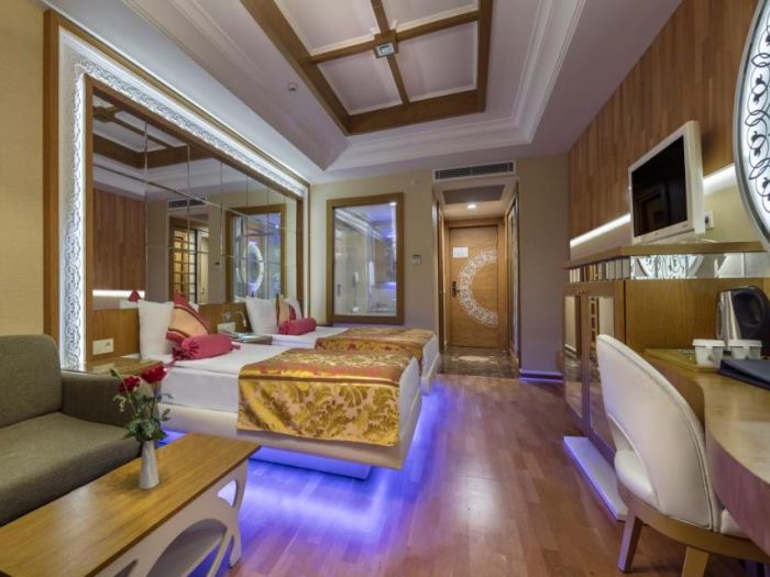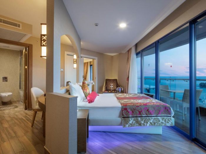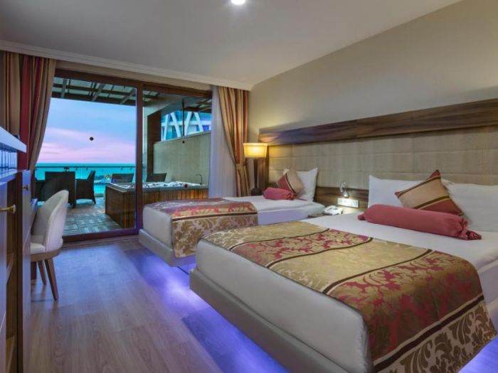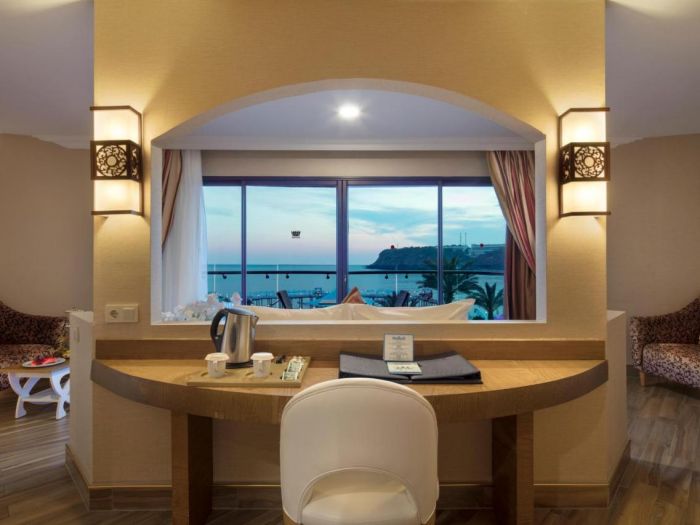 Хотелът разполага с общо 598 стаи, разположени в една 10-етажна основна сграда, от които 537 Standard room (с изглед суша или море - 26-36 m²), 29 Doublex family land view (на 2 нива, всяко от които има 1 спалня и 1 баня, 65–75 м2); 12 Family room sea view (2 спални – 50 м2). Всички стаи са оборудвани с климатик, телевизор, телефон, баня с душ, сешоар, сет за кафе/чай, минибар (вода, безалкохолни напитки, бира – безплатен), сейф (безплатен). Почистване на стаите и смяна на кърпите - всеки ден, смяна на спалното бельо - 2 пъти в седмицата.