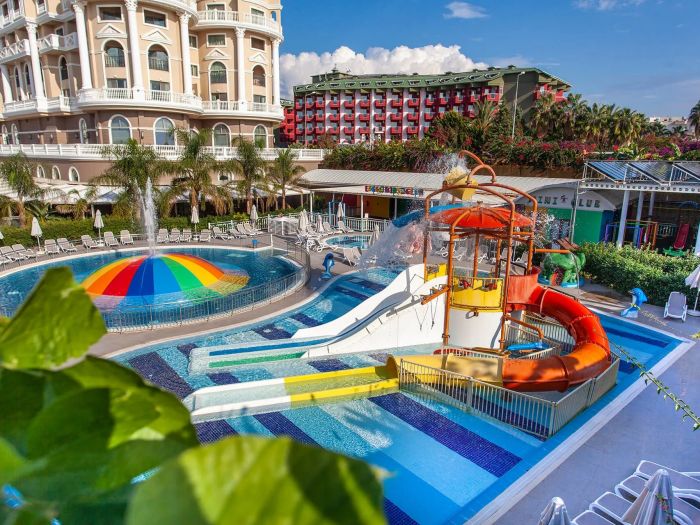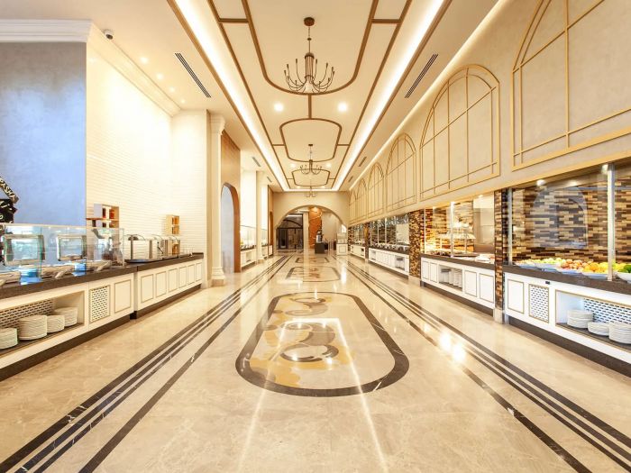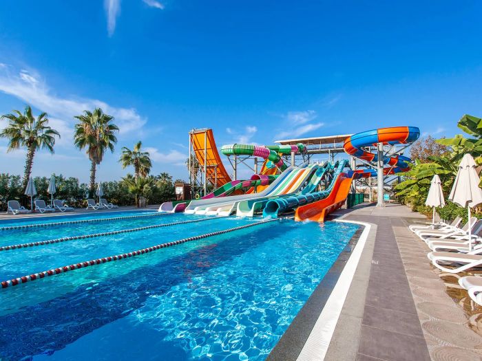 Основен ресторант, 4 а-ла-карт ресторанта ( турски, рибен, италиански, азиатски – платени с предвариелна резервация), 6 бара, сладкарница, 2 открити и 1 закрит басейн, аквапарк, СПА център, анимация, дискотека, паркинг.