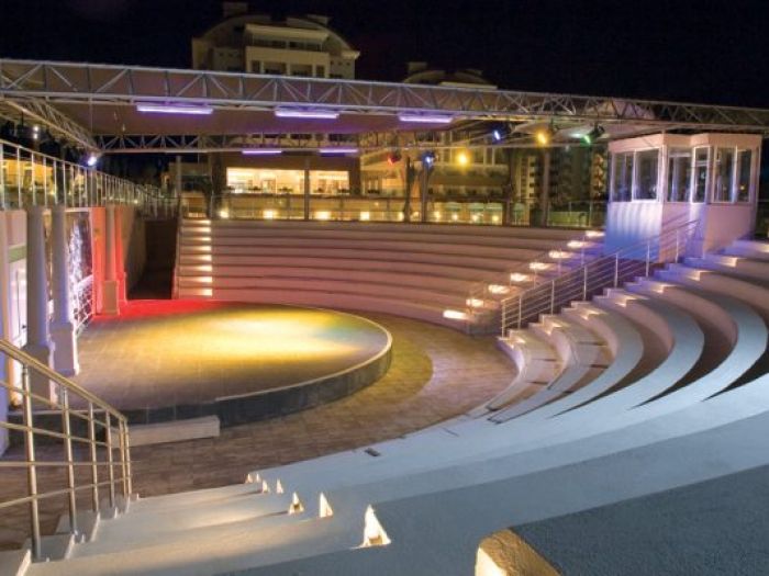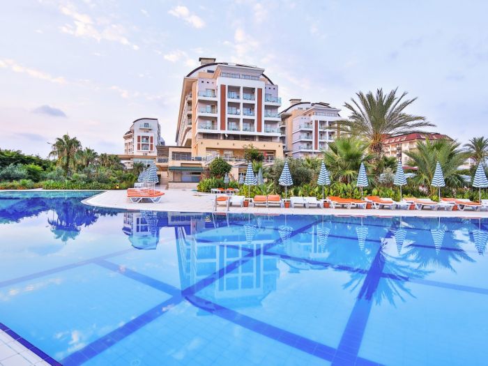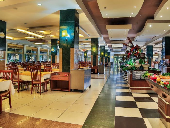 основен ресторант, 2 а-ла карт ресторант, 6 бара, откирт басейн, закрит басейн, 3 водни пързалки, спа салон, фризьор, 2 конферентни зали, безплатно: турска баня, фитнес, аеобика, баскетбол, аеробика, 2 тенис корта, тенис ракети под наем, баскетбол, анимации, безжичен интернет в лоби бар. платено - масаж, сауна, билярд, боулинг, осветление на тенис корт, кану, интернет кафе, водни спортове