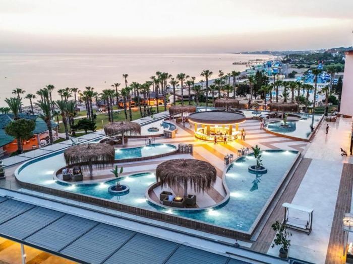 Основен ресторант, 3 а-ла-карт ресторанта (турски, италиански, средиземноморски - с предварителна резервация, съгласно концепцията на хотела), 5 бара, 3 открити и 1 закрит басейн, водни пързалки, амфитеатър, дискотека, СПА център, магазини, 3 конферентни зали, паркинг.