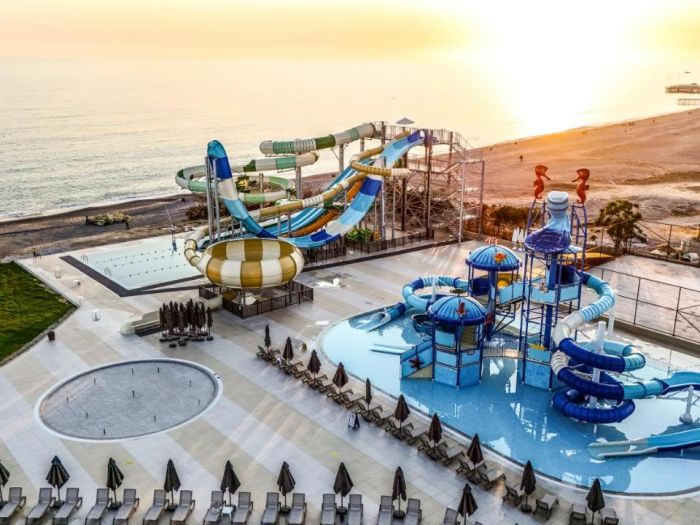 Безплатни услуги: Сауна, турска баня, парна баня, фитнес, тенис корт (с твърдо покритие), тенис на маса, дартс, футболно игрище, боча, плажен волейбол, аеробика, водно поло, жива музика, анимация, Wi-Fi (в общи площи).