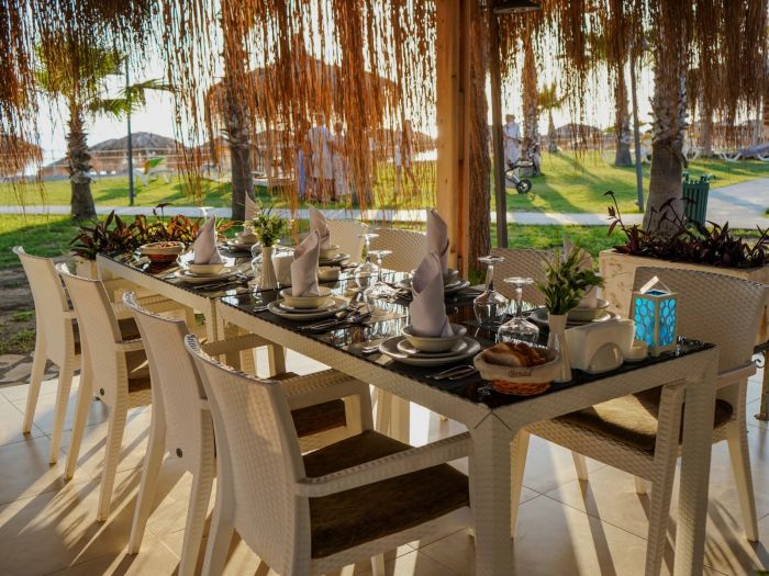 All Inclusive - закуска, обяд и вечеря на шведска маса, междинни хранения, местни алкохолни и безалкохолни напитки - без лимит (съгласно концепцията на хотела).