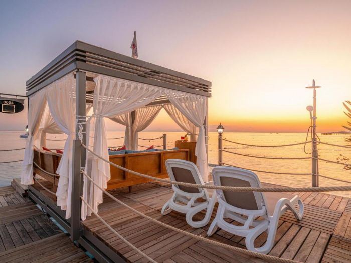 ПЛАЖ: Пясъчно-чакълест (200м. ). Чадъри, матраци, шезлонги, плажни хавлии - безплатно. Кабаните на плажа и кея - срещу заплащане.
