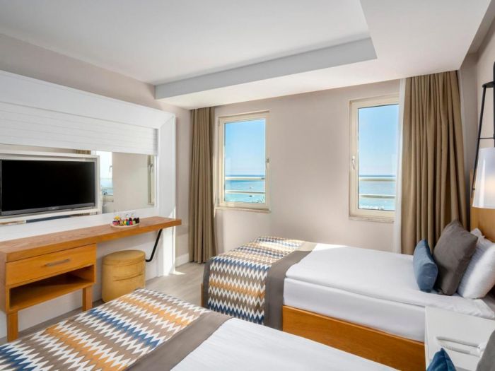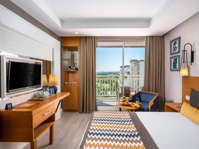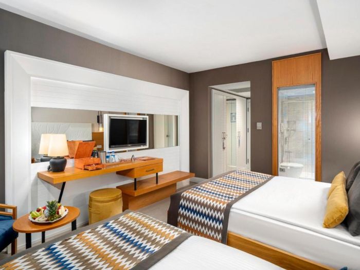 Хотелът разполага с 398 стаи. от които 361 Standard rooms (29 м2), 29 Jacuzzi rooms (29 м2) , 18 Family rooms (39 м2 - 2 спални с преходна врата, 1 баня). Всички стаи са оборудвани с: централен климатик, баня с душ, сешоар, телевизор, телефон, мини - бар (ежедневно се зарежда с вода, безалкохолни напитки, бира, шоколад и чипс), сейф (безплатно).