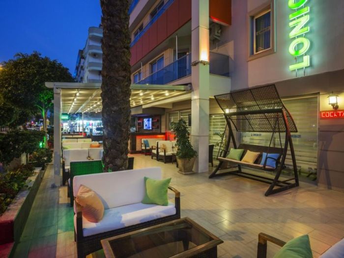 Основен ресторант, три бара, два открити басейна, два детски басейна, дартс и билярд, тенис на маса, безжичен интернет в лоби и в стаите. Плаж:чадъри и шезлонги на градския плаж на Алания срещу допълнително заплащане. Безплатно ползване на чадъри и шезлонги при басейна.