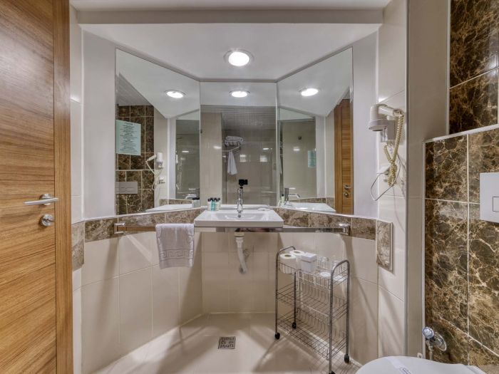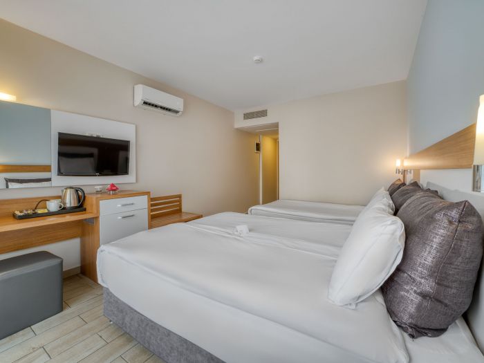 Всички стаи са оборудвани с климатик, телевизор, телефон, баня с душ, сешоар, сет за чай/кафе, минибар (безплатен), сейф (платен), балкон.