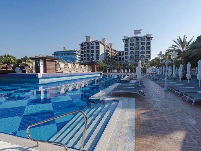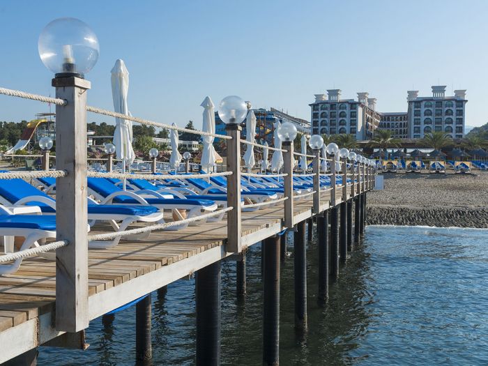 Намира се на 110 км от летище Анталия, на 120 км от центъра на Анталия, на 12 км от центъра на Алания, на брега на морето. Построен 2014 г., на обща площ от 20 000 м2.
