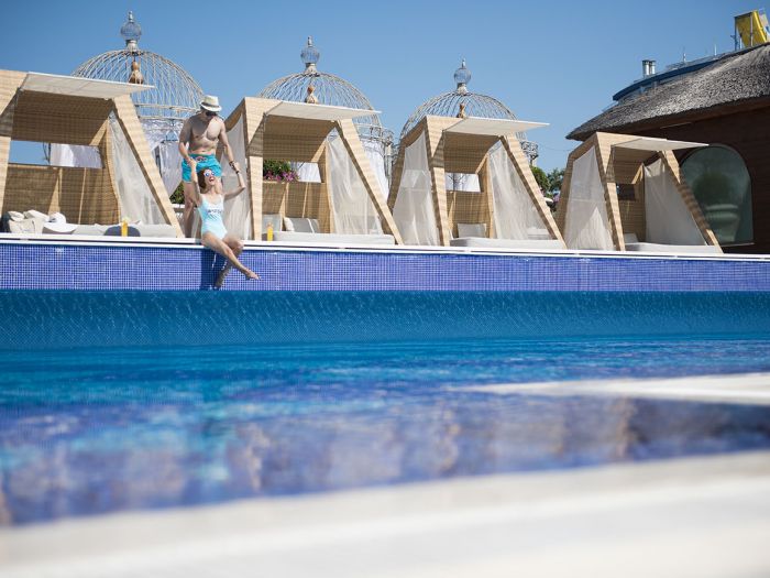 Зa децата: Детско меню, 1 открит и 1 закрит детски басейна, мини клуб (4-12 г), мини диско, детска анимация, детско столче, детска количка (под наем).