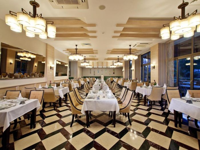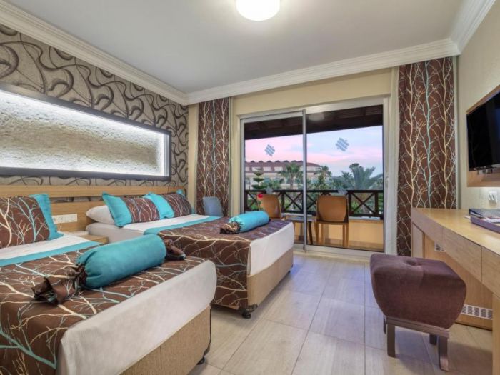 Основен ресторант, 2 а - ла - карт ресторанта(с предварителна резервация), 6 бара, 4 басейна, 5 водни пързалки, анимация, амфитеатър, интернет кафе (срещу заплащане), дискотека (безплатно), обмен на валута, магазини, 2 конферентни зали (500 места), паркинг. За децата: детски басейн, водни пързалки, детегледачка(заплаща се допълнително) Безплатни услуги: турска баня, сауна, фитнес център, дартс, волейбол, баскетбол, тенис на маса, Wi-fi Интернет Платени услуги: масаж, фризьор, Интернет кафе, център за красота, СПА - център, билярд Плаж: Пясъчно - чакълест. Плажни чадъри, матраци и шезлонги – безплатно.
