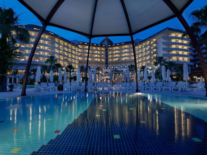Основен ресторант, 2 а - ла - карт ресторанта, 6 бара, 3 басейна, аквапарк. За децата: детски басейн, аквапарк, анимация Безплатни услуги: сауна, турска баня, фитнес, аеробика, мини клуб, мини - футбол, дискотека - напитки платено, безжичен интернет в лоби бар, баскетбол, сейф, дартс. Платени услуги: масаж, детегледачка, осветление тенис корт, билярд, уроци по тенис, водни спортове, фризьор, Интернет кафе, мини футбол, център за красота, СПА-център, билярд. Плаж: Пясъчно - чакълест. Плажни чадъри, матраци и шезлонги – безплатно.