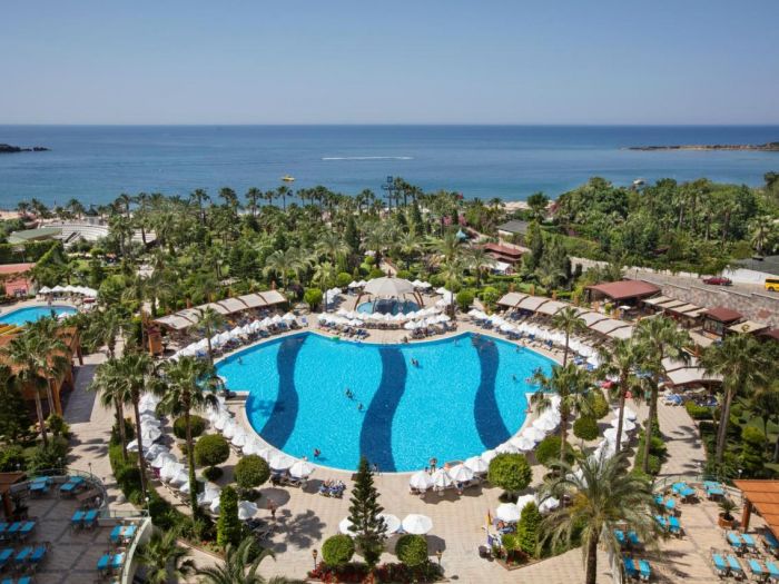 Намира се на 33км. от Алания, на 27км. от Сиде, на 90км. от летище Анталия, на брега на морето, собствен плаж. Построен е през 2008г. с обща площ от 18000м2., реновиран през 2008г.