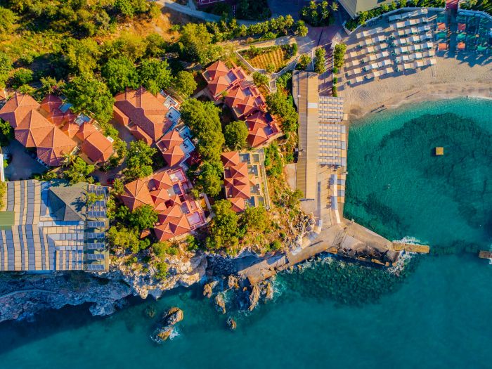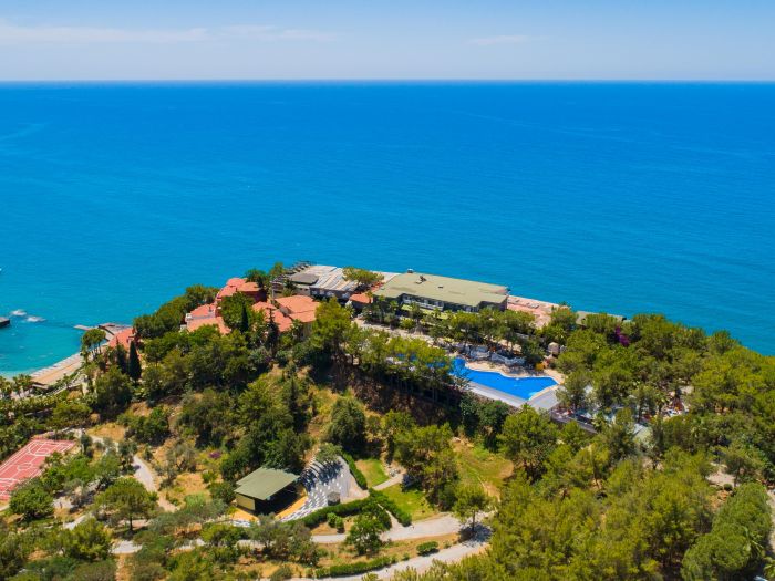 Намира се на 115 км от летище Анталия, на 125 км от центъра на Анталия, на 8 км от центъра на Алания, на хълм над брега на морето. Построен 1993 г. Реновиран 2020 г.
