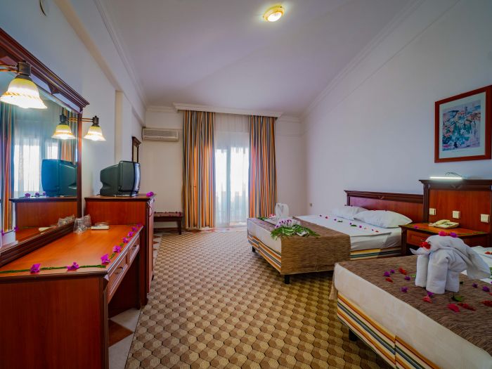 Хотелът разполага с общо 398 стаи, разположени в дву и три етажни сгради, от които Standard room (30 м2), 120 Family room (2 спални, 1 баня - 42 м2).