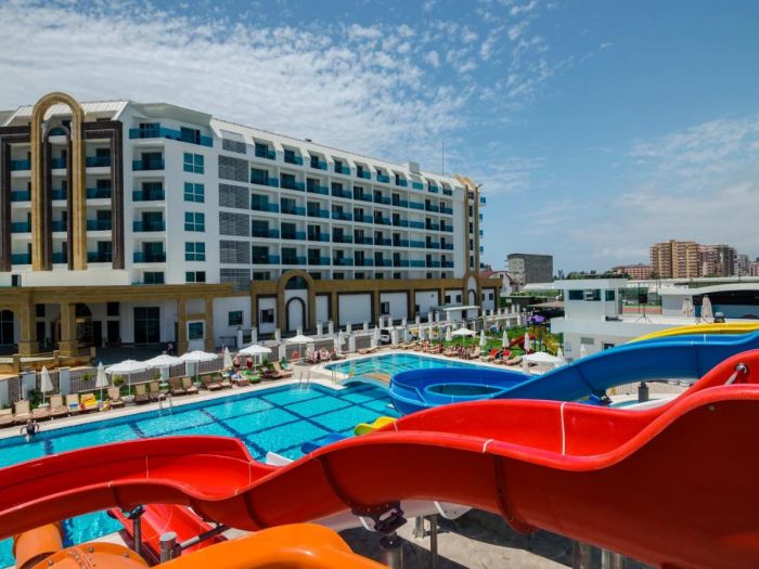 Намира се на 155 км от летище Анталия, на 170 км от центъра на Анталия, на 15 км от центъра на Алания, на 150 м от брега на морето. Построен 2016 г., на обща площ от 12 000 м2.