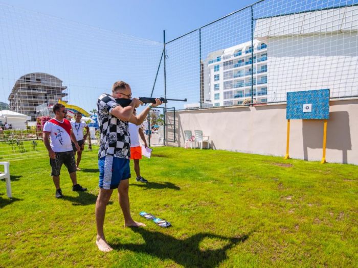 За децата: 2 открити детски басейна и 1 закрит, детска площадка, мини клуб (4-12 г), рисуване на лица, форми от балони, мини диско, детска анимация.