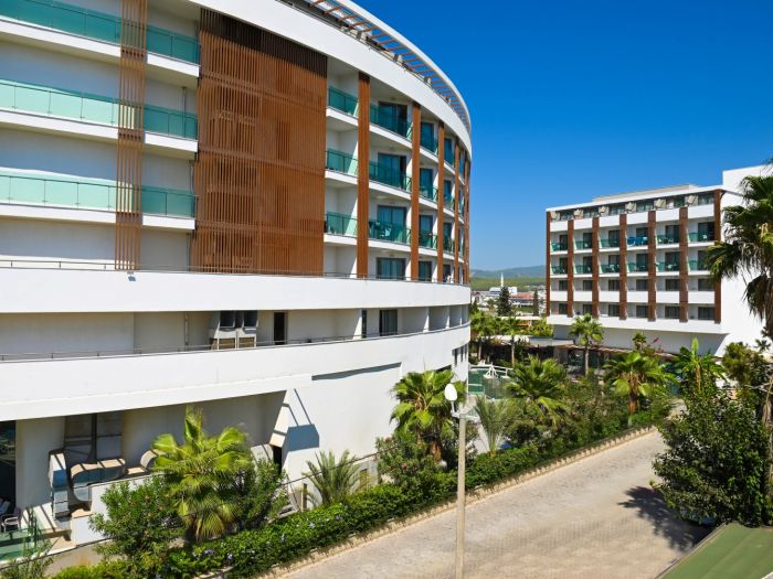 Намира се на 115 км от летище Анталия, на 120 км от центъра на Анталия, на 15 км от центъра на Алания, на 50 м от брега на морето (през път). Построен 2017 г., на обща площ от 11 000 м2.