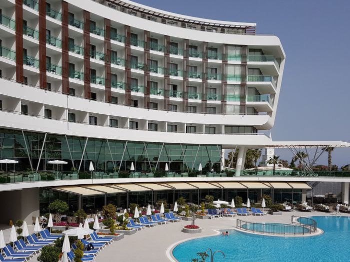 Стаи Main Building: 244 Hotel Standard sea view room (изглед море - 28 м2), Hotel Standard side sea view room (частичен изглед море - 28 м2), Hotel Standard land view room (изглед суша - 28 м2), 15 Dublex room (на 2 етажа - 2 спални, 2 бани, 1 диван - 56 м2), 7 Deluxe suite room (1 спалня, хол, 1 баня + джакузи - 57 м2), 4 Suite room (1 спалня + диван, 1 баня – 50 м2), 9 Large Standard room (32 м2).