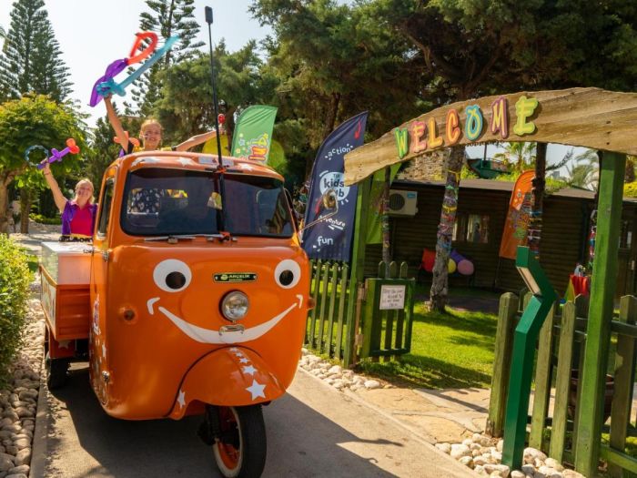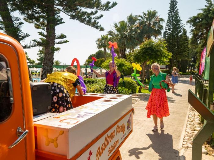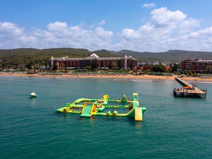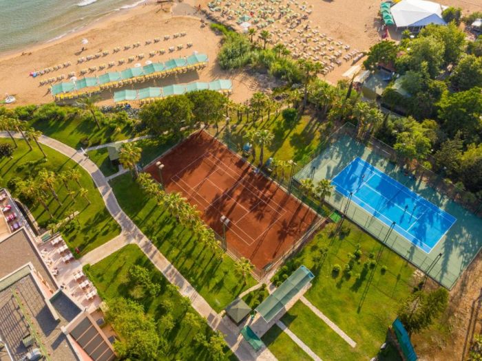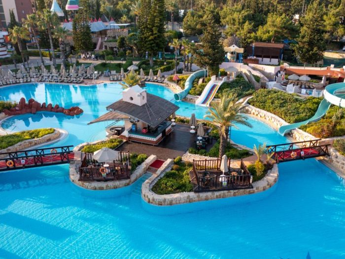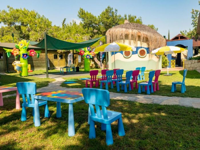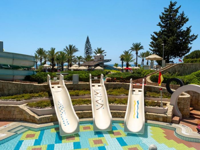 Основен ресторант, 3 а-ла-карт ресторанта 4 бара, 4 открити басейна, 1 детски басейн, водни пързалки за деца и възрастни, детска площадка, мини клуб (4-12г.).
