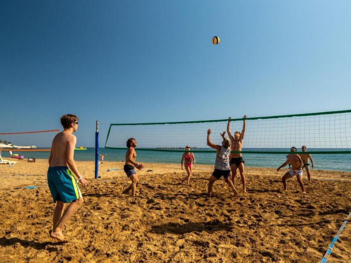 ПЛАЖ: Собствен, пясъчен, удостоен със сертификат Син Флаг за изключително чиста вода. На басейна и на плажа: чадъри, шезлонги, матраци – безплатно. Плажни хавлии: безплатно.
