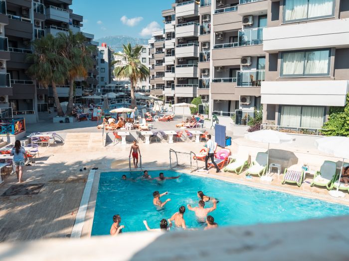 Намира се на 130 км. от летище Анталия, на 15 км. от центъра на Алания, на 50 м. от брега на морето. Построен е през 1985 г, с обща площ 5500 м2, последно реновиран през 2021 г.