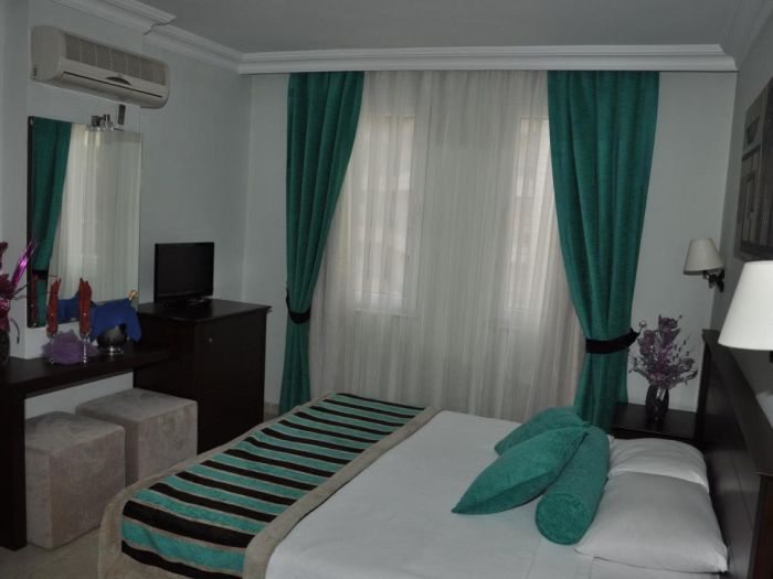 Намира се на 118 км от летище Анталия, на 128 км от центъра на Анталия, на 1 км от центъра на Алания, на 50 м от брега на морето. Построен 2003 г., на обща площ от 6 700 м2. Реновиран 2016 г.