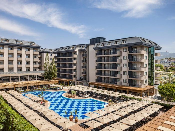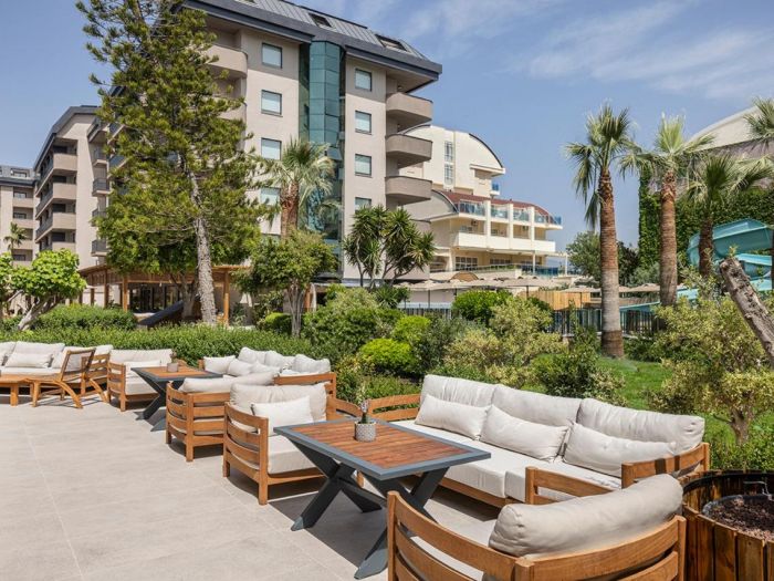 Разположен на 110 км от летище Анталия, на 12 км от центъра на Алания и на 800 м от Конаклъ, на 150 м от брега на морето. Реновиран през 2024 г.