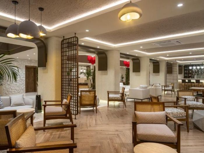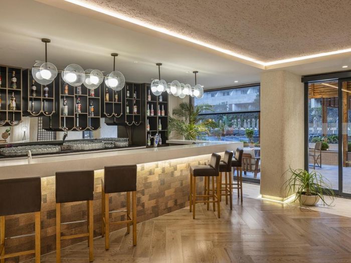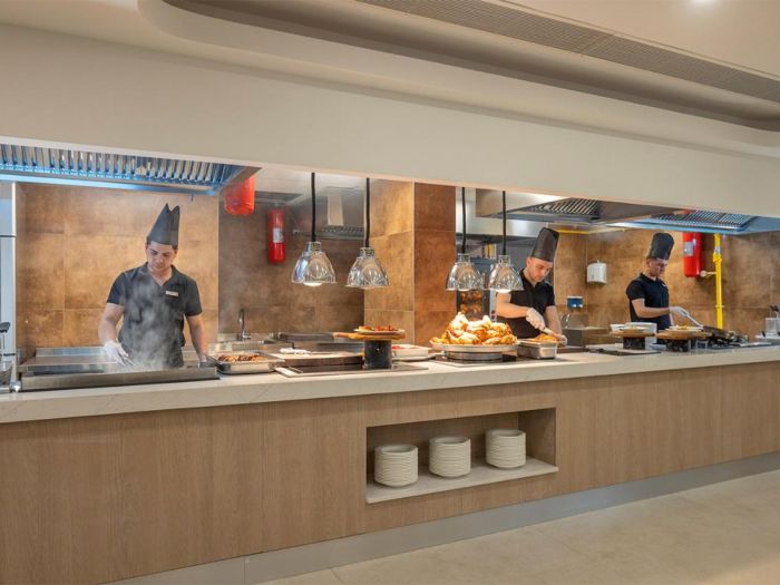 Основен ресторант, сладкарница, лоби бар, лаундж бар, бар при басейна, плажен снек бар, основен басейн, детски басейн, водни пързалки, фитнес, 24 часа рецепция, конферентна зала.