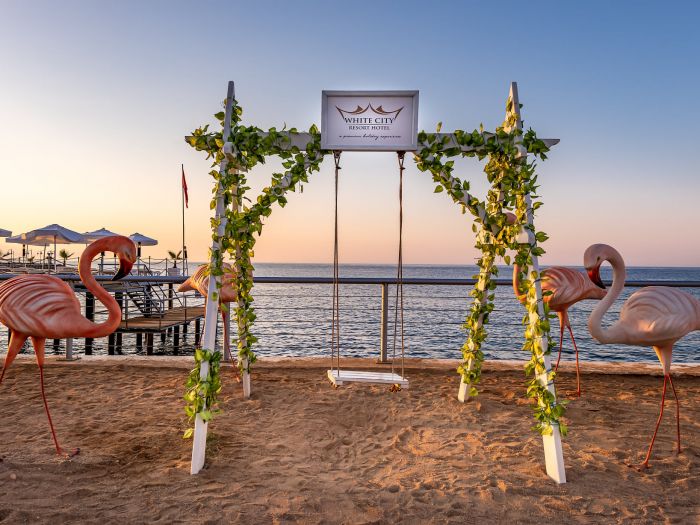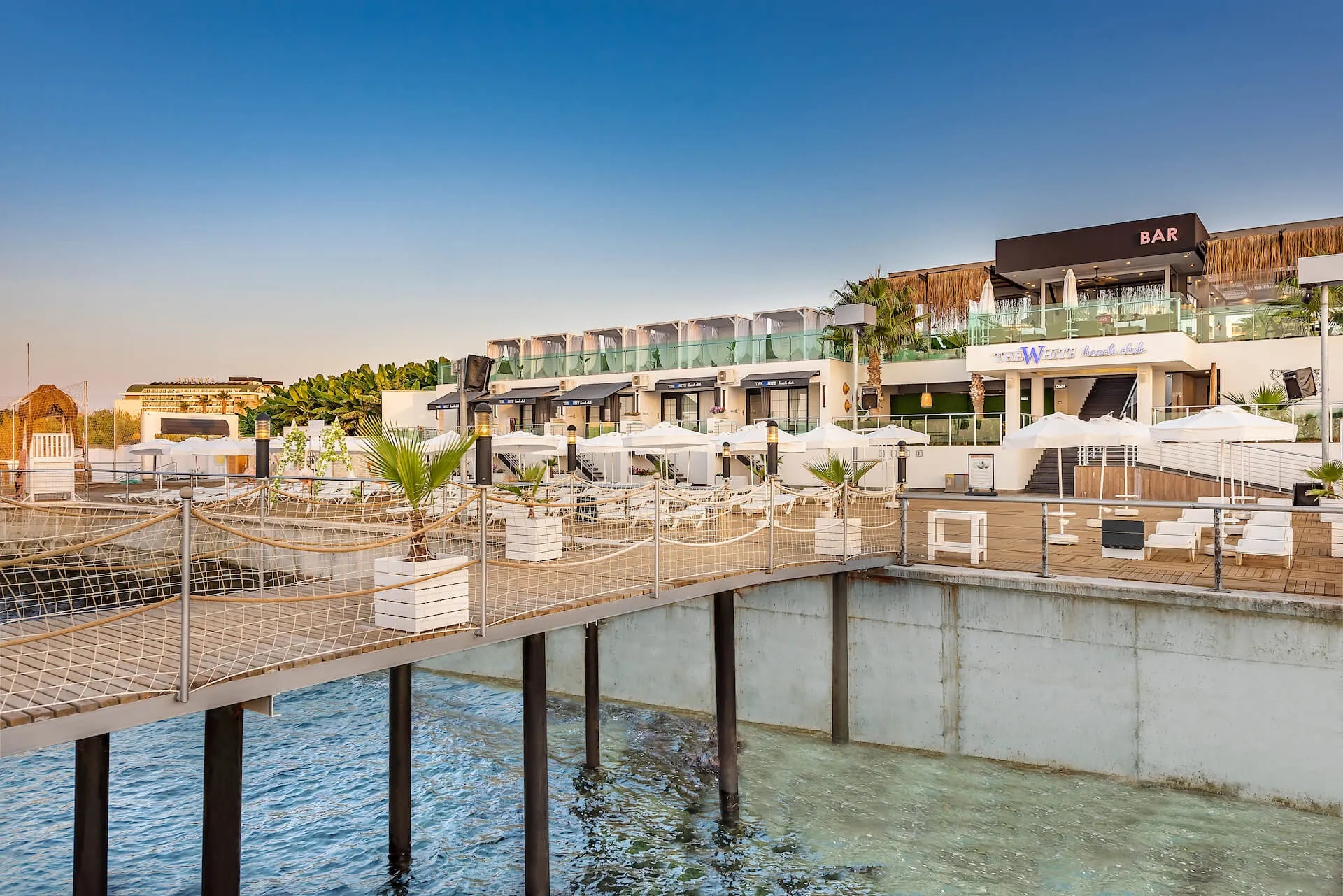 Основен ресторант, 3 а-ла-карт ресторант (световна кухня The White World Cuisine, средиземноморска кухня Terrace Taverna - безплатно, грил ресторант The Grill 16+ - срещу заплащане. Всеки ресторант изисква предварителна резервация.), кафе-бар, 4 бара, дискотека, сладкарница, 3 открити басейна (1 от които с концепция 16+) и 1 закрит басейн, 4 водни пързалки, библиотека, кино на открито, магазини, конферентни зали, паркинг, WI-FI (в основните части на хотела), концепция за младоженци (някои услуги са платени).