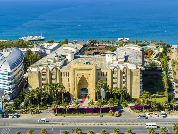 Намира се на 90 км от летище Анталия, на 100 км от центъра на Анталия, на 35 км от центъра на Сиде, на брега на морето. Построен 2007 г., на обща площ от 30 000 м2. Частично реновиран 2023/2024 г.