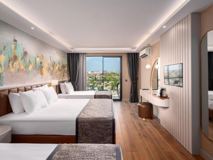Хотелът разполага с общо 170 стаи, разположени в 2 основни сгради Main Building, от които 55 Standard room sea view (изглед море, 20 – 25 м2); 20 Standard room side sea view Type 1(страничен изглед море, 20 – 25 м2); 20 Standard room side sea view Type 2(страничен изглед море, 20 – 25 м2); 44 Standard room land view Type 1 (изглед суша, 20 – 25м2); 20 Standard room land view Type 2 (изглед суша, 20 – 25м2); 10 Standard large room land view (изглед суша, 25 – 30м2).