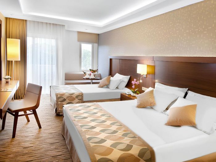 Основен ресторант, 3 а-ла-карт ресторанта (рибен, турски, италиански – срещу заплащане с предварителна резервация, снек ресторант, гьозлеме, сладоледена къща, сладкарница, 5 бара, 2 открити и 1 закрит басейн, 4 водни пързалки, амфитеатър, СПА център, дискотека, магазини, 12 конферентни зали, паркинг.