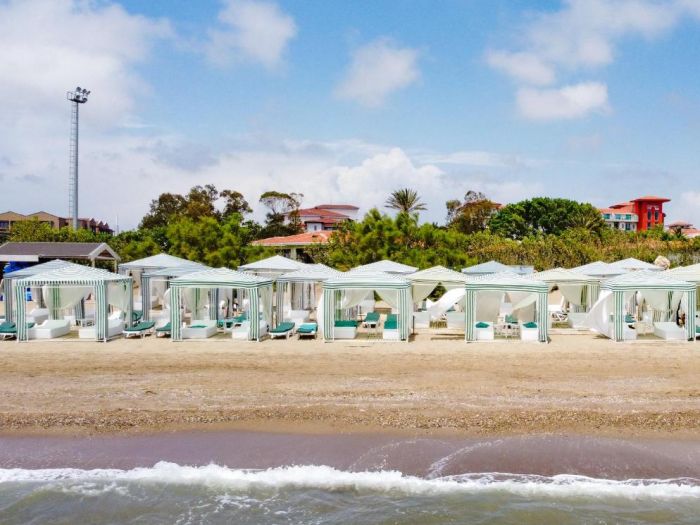 Намира се на 30 км от летище Анталия, на 35 км от центъра на Анталия, на 1 км от центъра на Белек, на брега на морето. Построен 1997 г., на обща площ от 100 000 м2. Реновиран 2017 г.