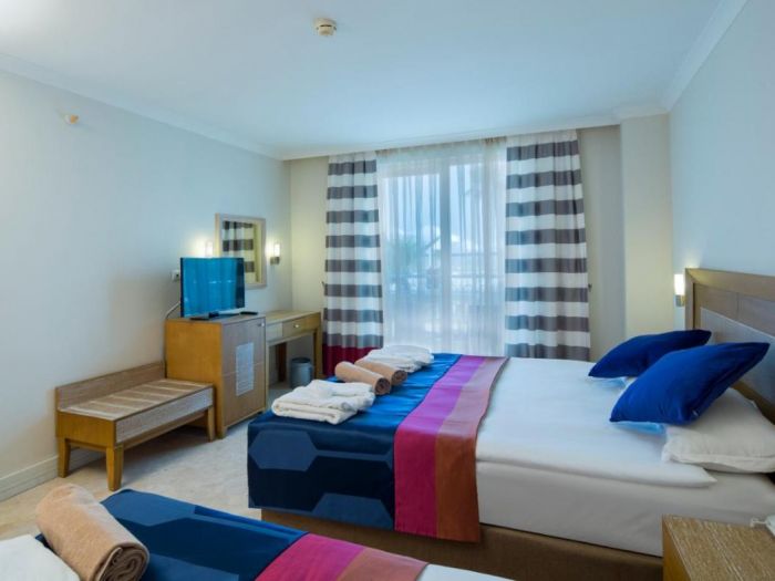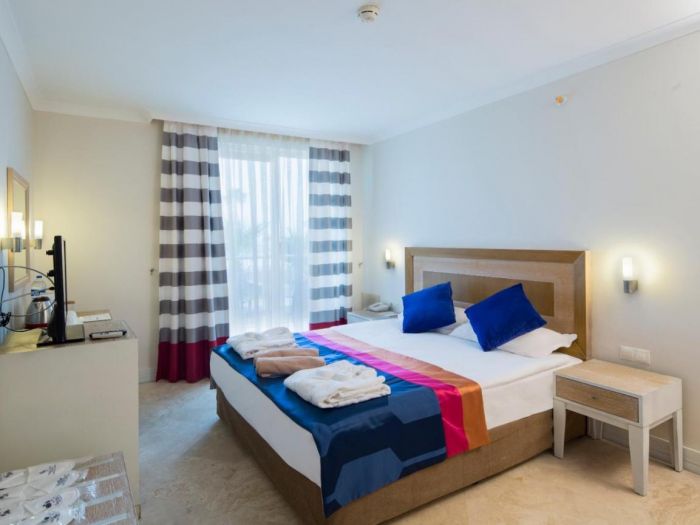 Основен ресторант, а- ла - карт ресторант (турски , италиански и мексикански - с предварителна резервация, един безплатно за 7 нощувки), 7 бара, 1 открит басейн, 1 закрит басейн, WI - FI (безплатно). За децата: Детски басейн, мини клуб (4-12 г.), детско меню, детска площадка. Безплатни услуги: сауна, турска баня, фитнес, тенис на маса, тенис на корт, баскетбол, аеробика, плажен волейбол, мини голф, дартс, кино, анимация. Платени услуги: Масаж, пилинг, СПА център, фризьорски и козметичен салон, магазини, билярд, лекар.