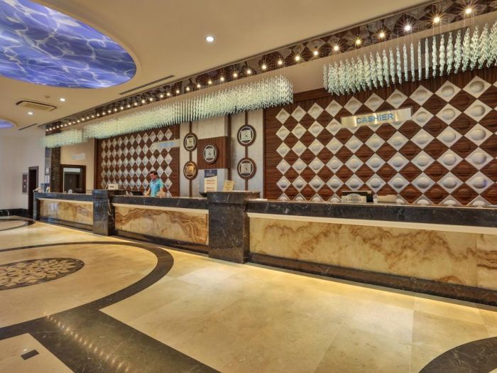 Основен ресторант, 5 a - лa - карт ресторанта ( по едно безплатно посещение по време на престоя ), 7 бара, магазини, Интернет - кафе, безжичен интернет на територията на хотела ( безплатно ), 2 открити басейна, закрит басейн, аква парк, 5 водни пързалки. За децата: мини клуб(4-12г.), 2 детски басейна. Безплатни услуги: турска баня, сауна, парна баня, джакузи, тенис корт, баскетбол, плажен волейбол, фитнес, тенис на маса, водна топка, водна аеробика, дартс, мини голф, кино. Платени услуги: масаж, пилинг, билярд, боулинг, видео игри, джага, осветление на тенис корта, тенис ракети и топки под наем, кану, водно колело, сърф (с лиценз), голф, водни ски, банан, фризьорски салон, СПА-център
