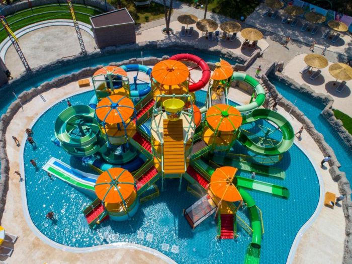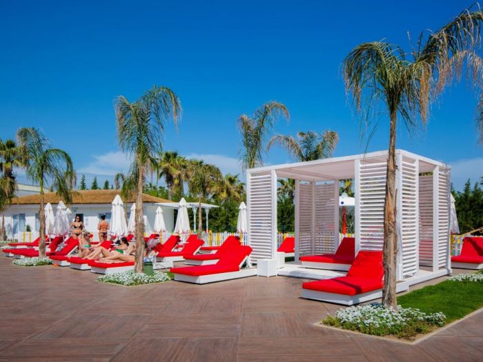 Основен ресторант, ресторант към клубните стаи, 4 а-ла-карт ресторанта (рибен, италиански, барбекю – 1 безплатно посещение на 1 от ресторантите при минимум 7 нощувки), 24/7 интернационален ресторант а-ла-карт, суши бар, сладкарница, снек ресторант, гьозлеме, 11 бара, 4 открити и 1 закрит басейн, аквапарк, увеселителен парк, кино, амфитеатър, жива музика, специални шоу програми, дискотека, СПА център, магазини, 5 конферентни зали, паркинг.