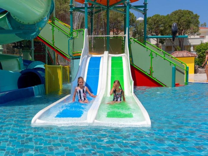 За децата: 2 детски басейна, детски аквапарк, детска площадка, бейби клуб (0-3 г), мини клуб (4-12 г), детски театър, лего център, PlayStation игри, мини диско, детски тенис корт, детска анимация, музикални игри, кулинарни дейности, детска количка (с депозит), детско меню, детска и бебешка концепция.