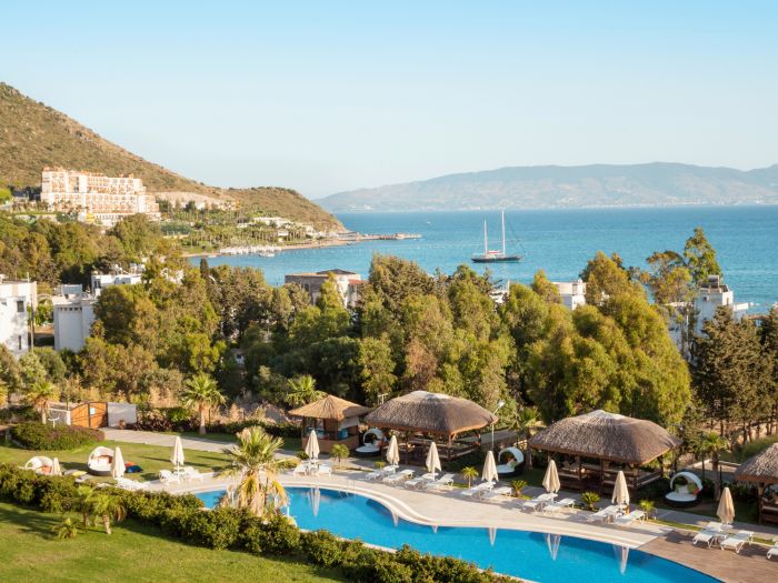 Намира се на 60 км от летище Бодрум, на 23 км от центъра на Бодрум, на 8 км от центъра на Тургутрейс, в района на Акярлар, на 120 метра от морето. Построен 2010 г., на обща площ от 16 000 м².