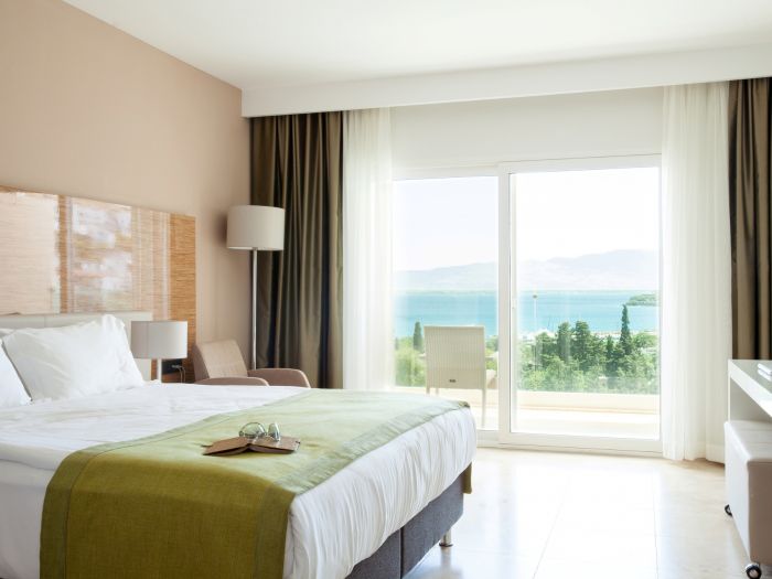 Стаи Land View Room (стандартни стаи в основната сграда с изглед суша - 30 м²), Sea View Room (стандартни стаи в основната сграда с изглед море - 30 м²), Club Room Land View (спалня, хол, баня, с изглед суша - 42 м²), Club Room Sea View (спалня, хол, баня, с изглед море - 42 м²).