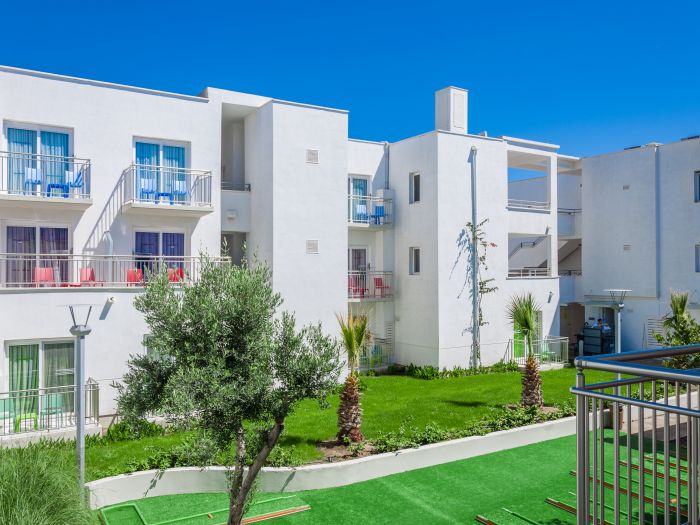 Хотелът разполага общо с 381 стаи в двуетажни сгради, от които 302 Standard Room (20 m², разполагат с френско легло или две единични), 48 Large room (26 m², с френско легло и двуетажно легло), 8 Deluxe Room (22 m² спалня с джакузи), 5 Deluxe Suite (46 m² с една спалня и една дневна), 12 Junior Suite (32 m² с една спалня и една дневна), 2 Oval Suite (45 m² с легло в овална форма и джакузи в същата).