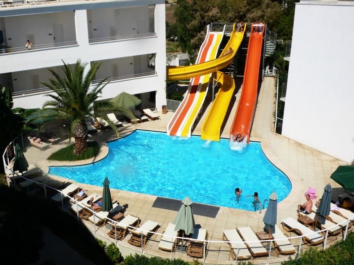 За децата: Детски басейн, водна пързалка, детска площадка, мини клуб (4-12 год.).
