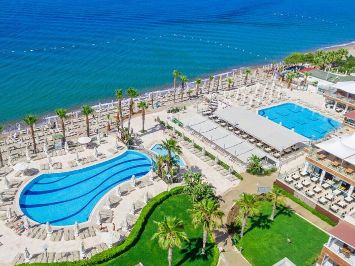 Основен ресторант, 3 а- ла- карт ресторанта (рибен - платен с предварителна резервация от 15.05 до 15.09; турски и италиански - безплатни при минимум 5 нощувки, с предварителна резервация от 15.05 до 15.09; затворени по време на религиозни празници), 7 бара - Lobby, Snack, English pub (всяка вечер от 01:00 - 07:00 се предлагат безплатни сандвичи), Disco Pub, Provezza и Lotus, 3 открити басейна (единият е с водни пързалки).