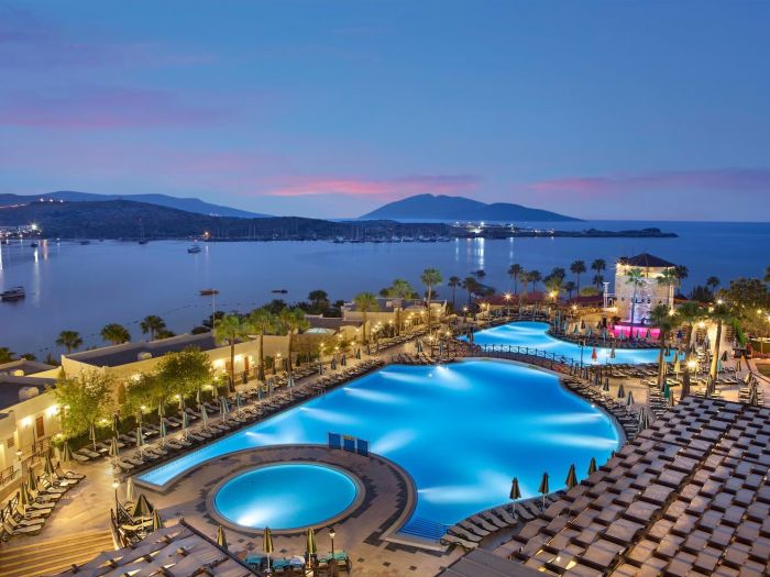 Намира се на 37 км от летище Бодрум, на 4 км от центъра на Бодрум, в района на Гюмбет, на брега на морето. Построен 1999 г., на обща площ от 38 000 м². Реновиран 2023 г.