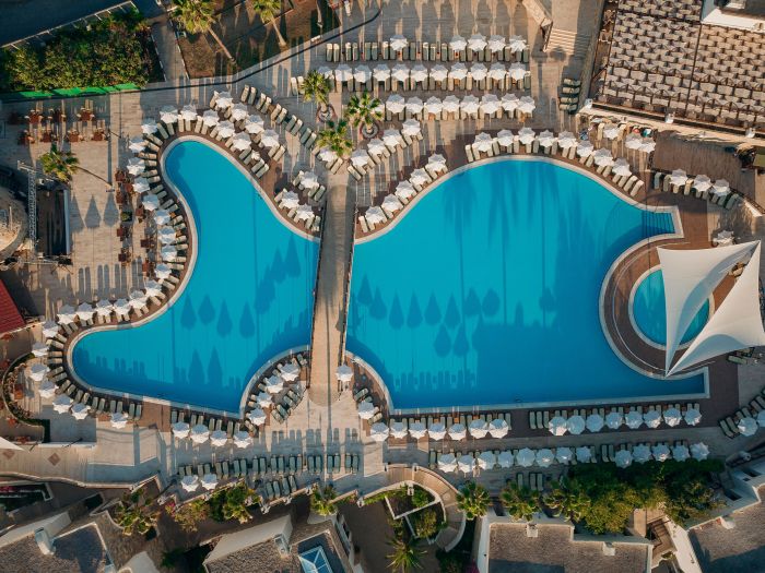 Основен ресторант, 4 а-ла-карт ресторанта (рибен, турски, италиански, 24/7 - с предварителна резервация, съгласно концепцията на хотела) сладкарница, 7 бара, 4 открити и 1 закрит басейн, аквапарк, амфитеатър, СПА център, дискотека, магазини, конферентни зали, паркинг.