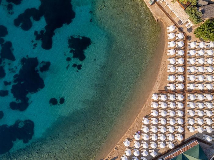 Собствен, пясъчен, платформа. Чадъри, шезлонги и плажни кърпи на плажа и при басейна – безплатно.