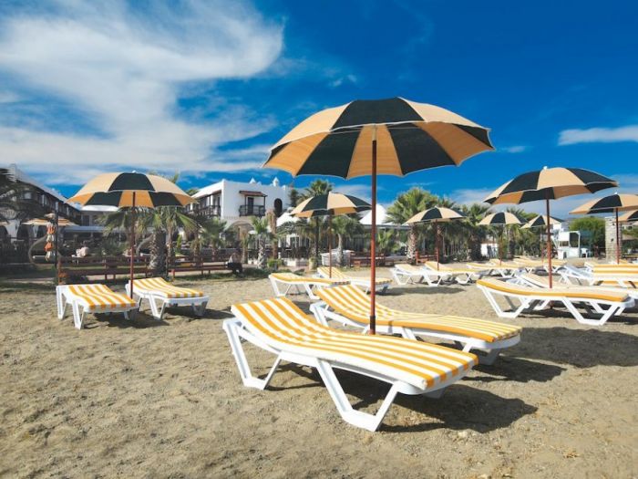 Собствен пясъчен плаж. Чадъри, шезлонги и плажни кърпи на плажа и при басейна - безплатно.