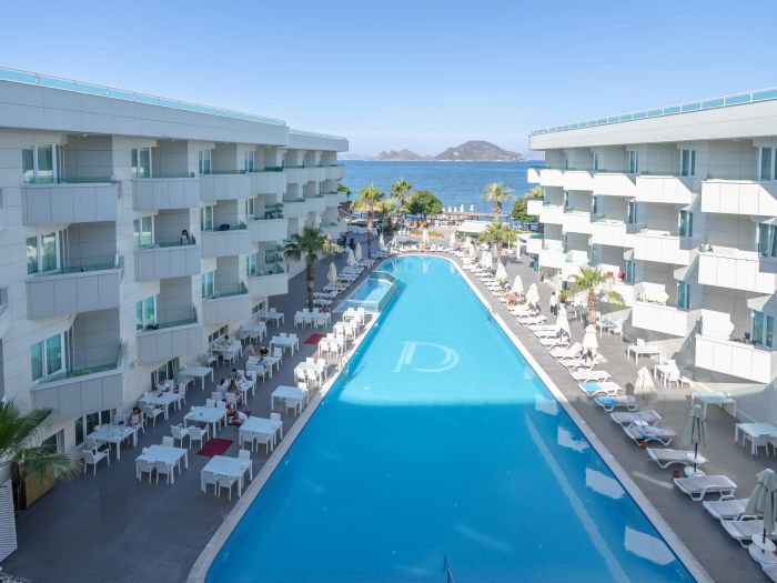 Намира се на 55 км от летище Бодрум, на 20 км от центъра на Бодрум, на 1 км от центъра на Тургутрейс, на брега на морето. Построен 2014 г., на обща площ от 10 000 м².