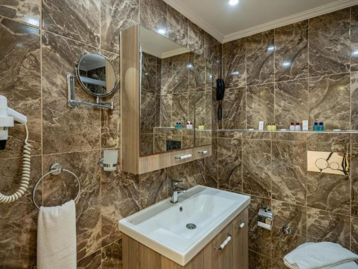 Всички стаи са оборудвани с климатик, телевизор, телефон, баня с душ, сешоар, минибар (зарежда се само с вода), сейф (платен).